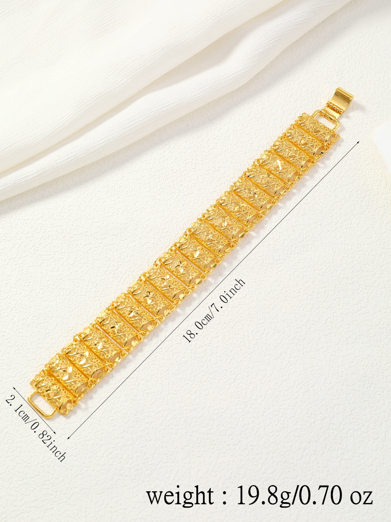 Step into timeless Middle Eastern elegance with our Saudi Arabia Inspired Gold Bead Bracelet, featuring a delicate hollow chain patch design that captures classic Arabic artistry and sophistication.