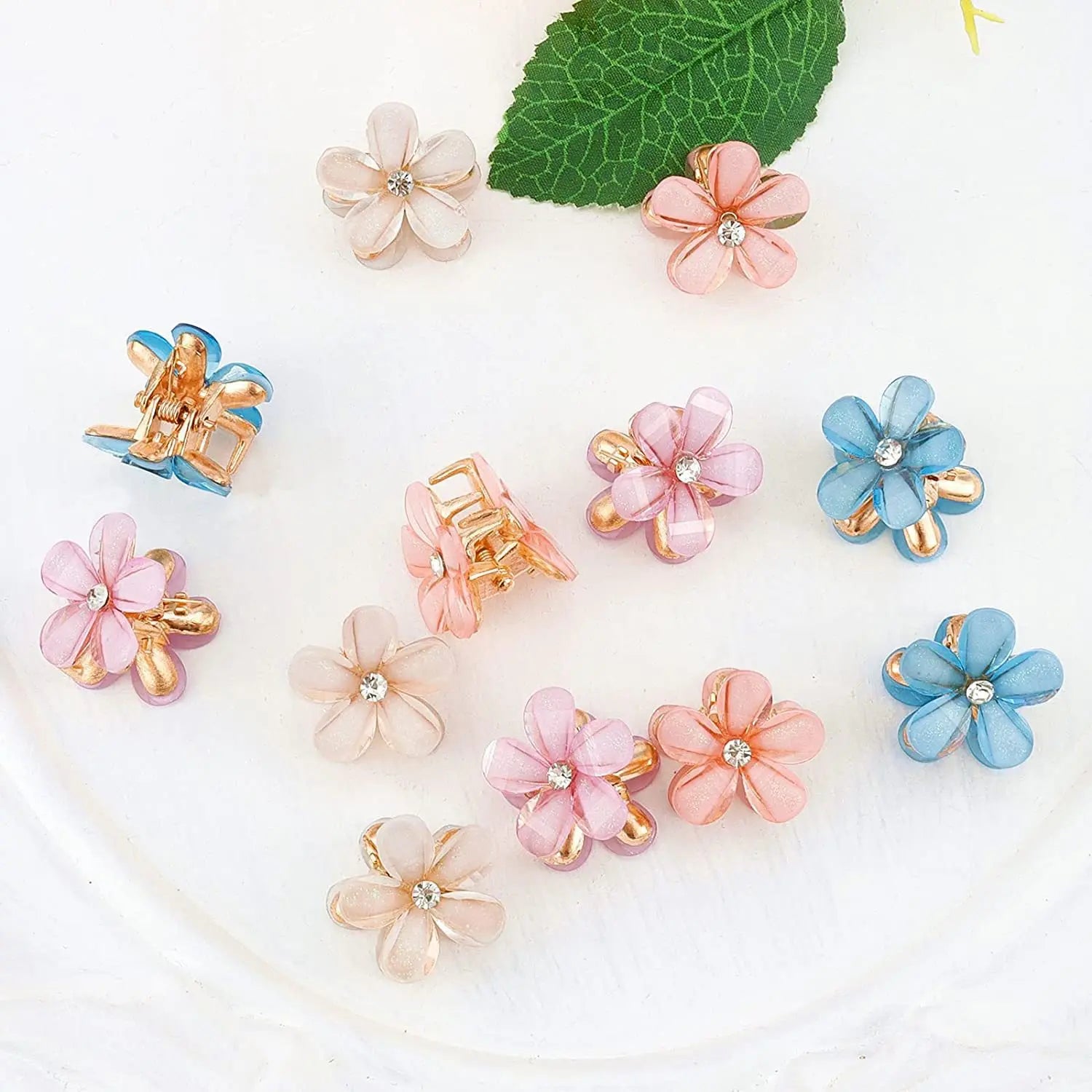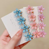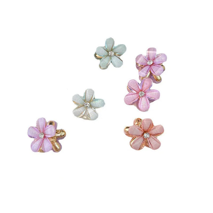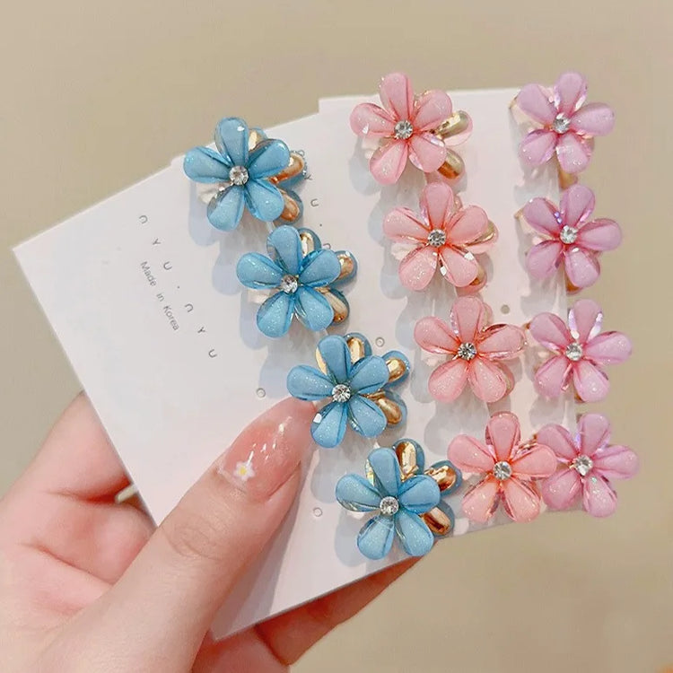 Description: A cute set of 10 crystal flower hair clips made with sparkling rhinestones and alloy. Perfect for sweet summer hairstyles, side clips, and everyday styling for girls. Lightweight, charming, and easy to wear.