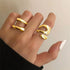Each ring features a unique irregular geometric design, crafted from high-quality gold-plated metal for a smooth, polished finish. Whether worn together for a dramatic layered look or separately for minimalist flair, these chunky open rings add instant sophistication to any outfit.