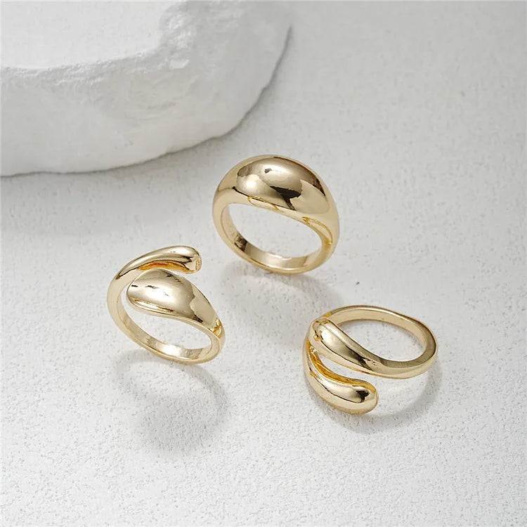 Each ring features a unique irregular geometric design, crafted from high-quality gold-plated metal for a smooth, polished finish. Whether worn together for a dramatic layered look or separately for minimalist flair, these chunky open rings add instant sophistication to any outfit.