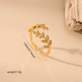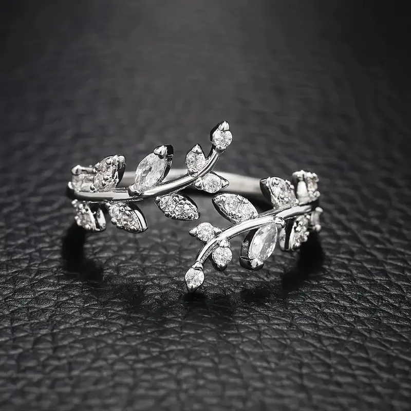925 Sterling Silver Olive Branch Ring – Adjustable Zircon