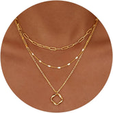 Enhance your style with this Layered Gold Necklace Set, perfect for women who love versatile and elegant jewelry. Featuring stackable 14K gold and silver-plated chains, this set combines chic circle pendants and trendy paperclip chains to create a modern, layered look.