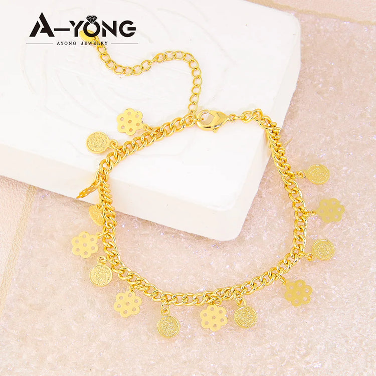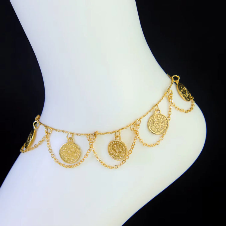 Step into elegance with this Luxury Arabic 21K Gold-Plated Anklet Chain, inspired by Dubai and Saudi Arabian jewelry traditions. This stunning ankle bracelet brings a rich, radiant glow that perfectly complements traditional outfits and modern fashion alike.