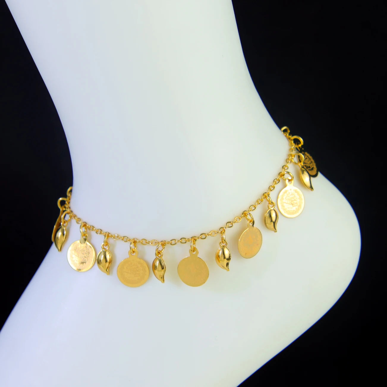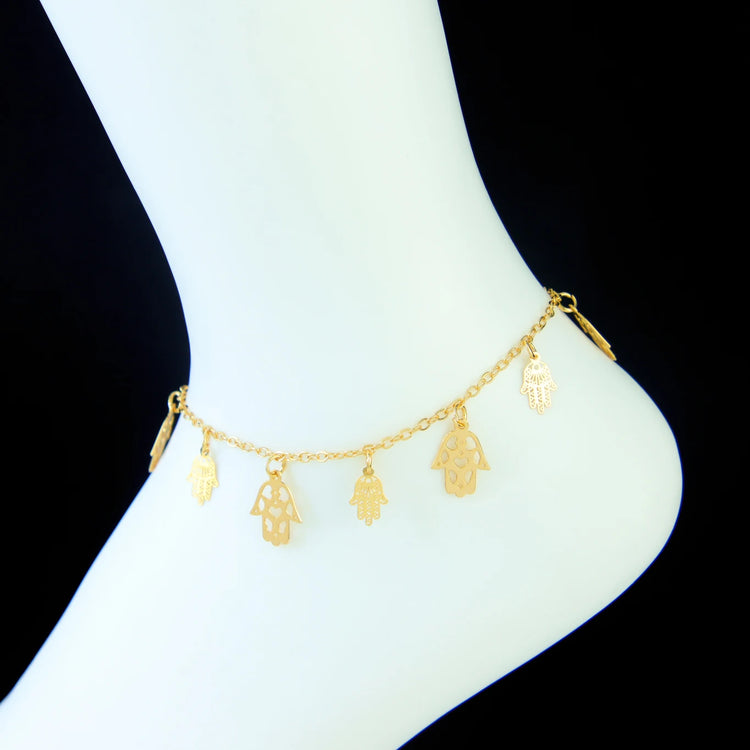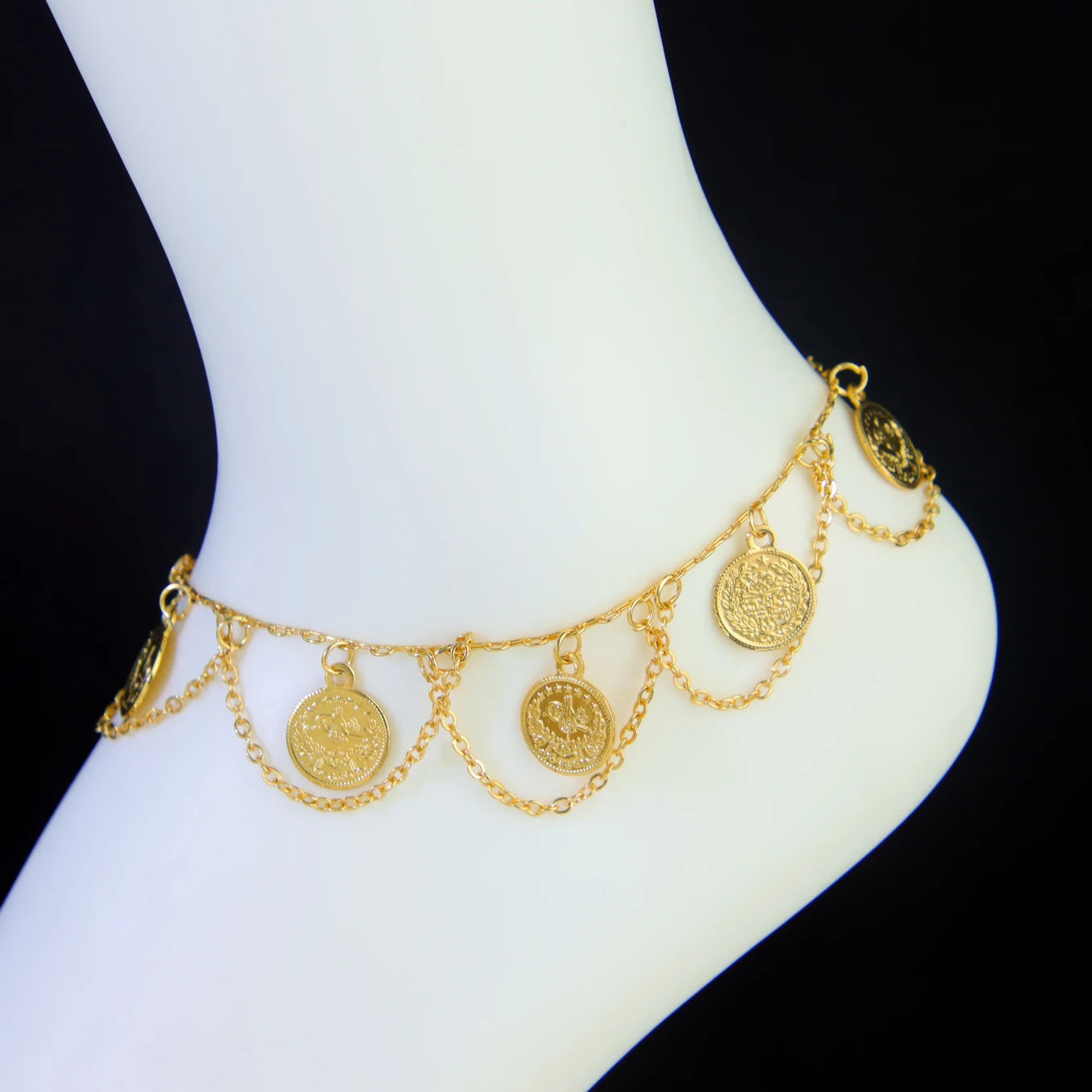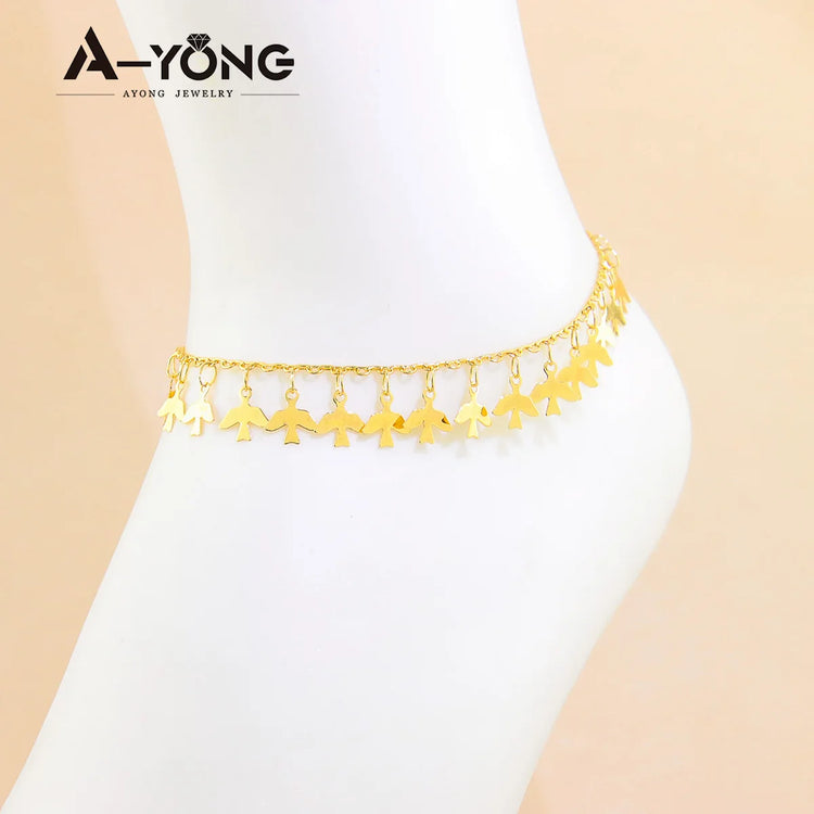 Crafted from premium stainless steel with 21K gold plating, it delivers a luxurious finish that resists tarnish and fading. The intricate link chain design wraps beautifully around the ankle, creating a timeless look that shines with Arabic sophistication and feminine grace.