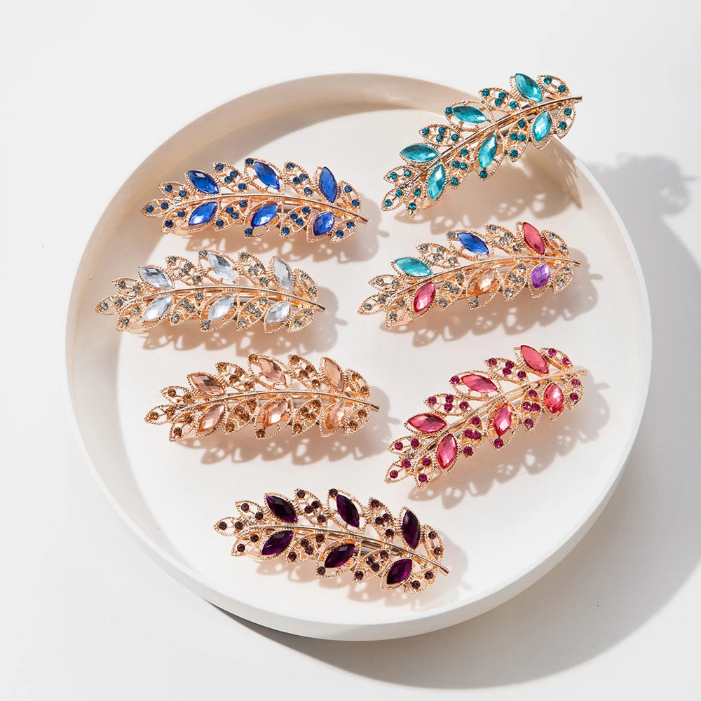 Crystal Leaf Rhinestone Hair Clip