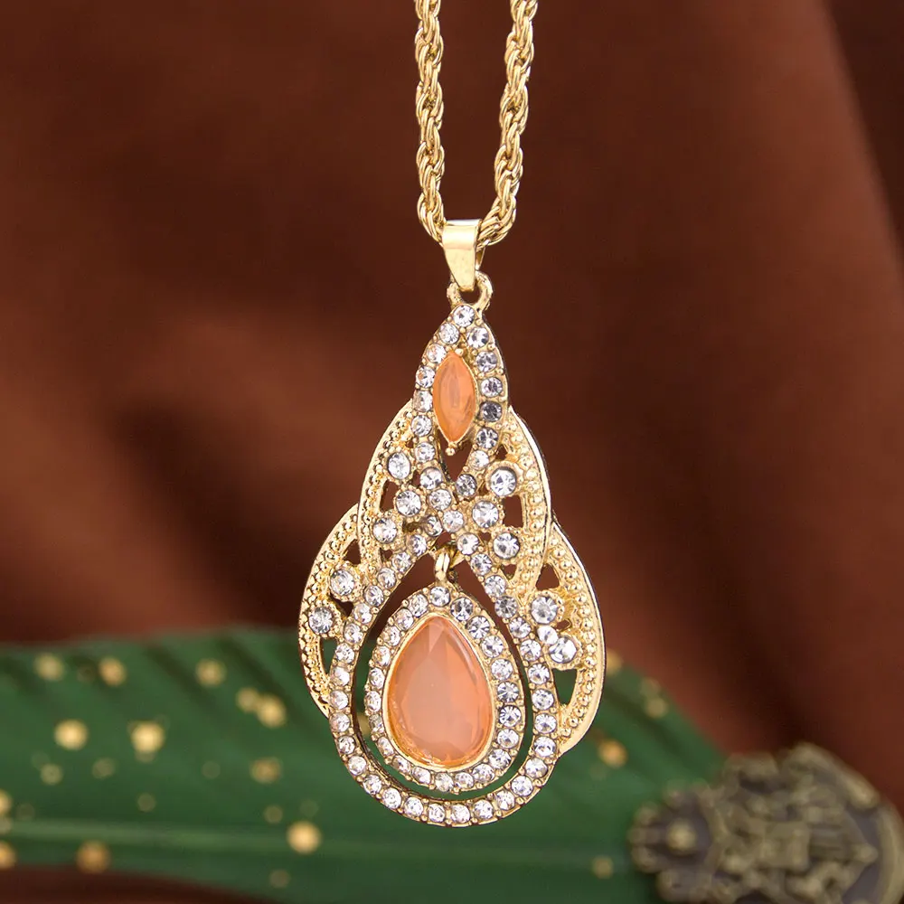 Radiate timeless elegance with the Sunspicems Gold Arabian Crystal Pendant Necklace, a dazzling piece inspired by Middle Eastern luxury and Turkish craftsmanship.